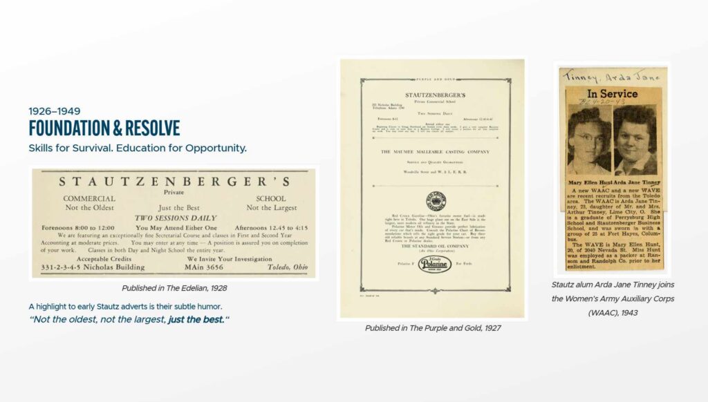 In 1926, Ohio educator William Henry Stautzenberger founded a small vocational school in Toledo: the Stautzenberger’s Private Commercial School. Its mission was simple and bold: Equip students with practical skills that lead directly to work.